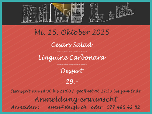 Das nächste Nachtessen findet voraussichtlich am 5. November statt. Wir informieren.
